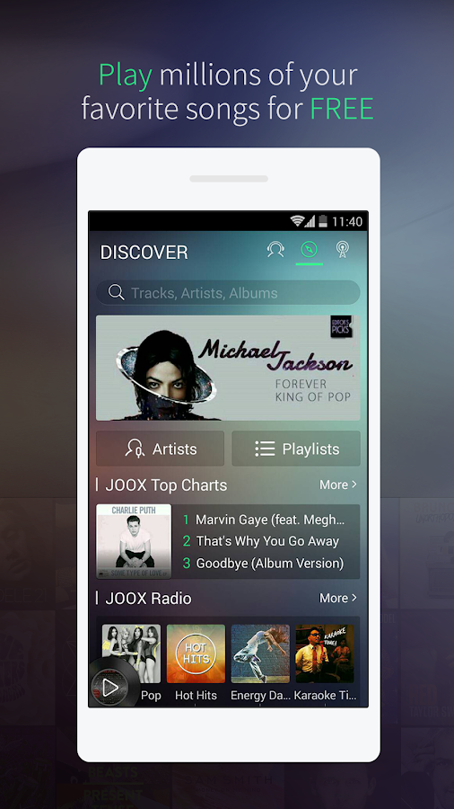 • Banyak koleksi lagu barat maupun lokal • Radio JOOX – Akses ke lebih dari 50 radio dengan playlist yang luas